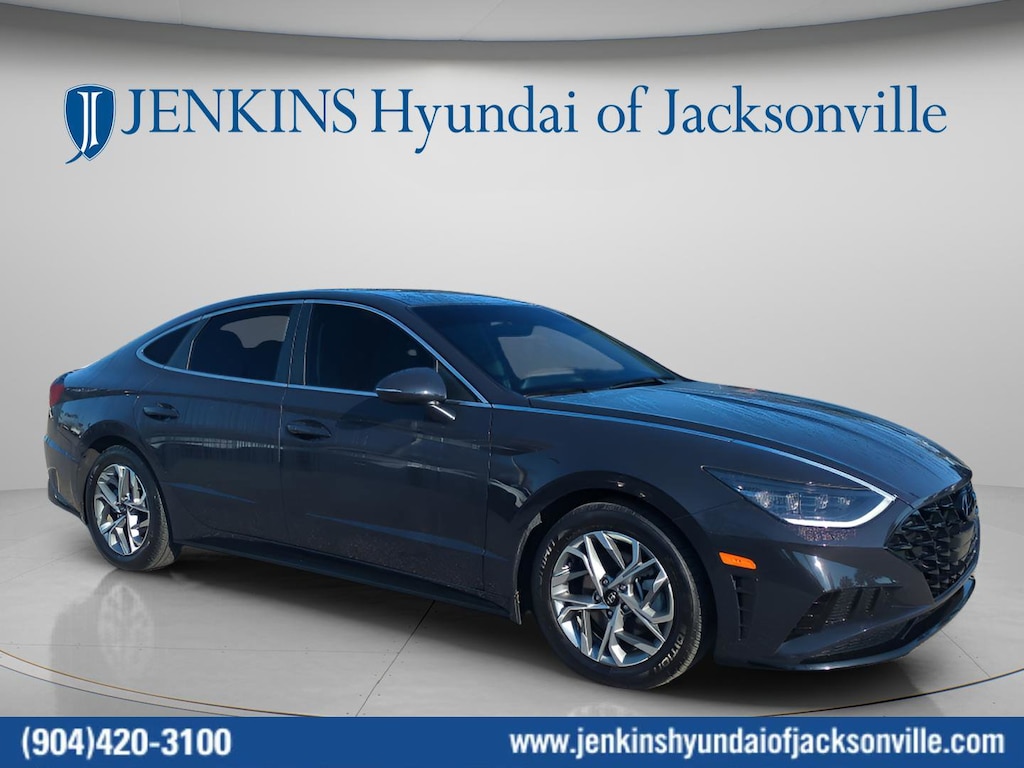 CARFAX One-Owner. Clean CARFAX. This 2023 Hyundai Sonata SEL in Carbon Blue features Option Group 01, 17" x 7.0J Aluminum Alloy Wheels, 4-Wheel Disc Brakes, 6 Speakers, ABS brakes, Air Conditioning, Alloy wheels, AM/FM radio: SiriusXM, Apple CarPlay & Android Auto, Auto High-beam Headlights, Automatic temperature control, Brake assist, Bumpers: body-color, Cargo Tray, Carpeted Floor Mats, Delay-off headlights, Driver door bin, Driver vanity mirror, Dual front impact airbags, Dual front side impact airbags, Electronic Stability Control, Emergency communication system: Blue Link Connected Car Service (3-year complimentary subscription), Exterior Parking Camera Rear, First Aid Kit, Four wheel independent suspension, Front anti-roll bar, Front Bucket Seats, Front Center Armrest, Front dual zone A/C, Front reading lights, Fully automatic headlights, Heated door mirrors, Heated Front Bucket Seats, Heated front seats, Illuminated entry, Knee airbag, Low tire pressure warning, Navigation System, Occupant sensing airbag, Outside temperature display, Overhead airbag, Overhead console, Panic alarm, Passenger door bin, Passenger vanity mirror, Power door mirrors, Power driver seat, Power steering, Power windows, Premium Cloth Seating Surfaces, Radio data system, Radio: AM/FM/MP3/HD/SiriusXM Display Audio w/Nav, Rear anti-roll bar, Rear seat center armrest, Rear side impact airbag, Rear window defroster, Remote keyless entry, Security system, Speed control, Speed-sensing steering, Speed-Sensitive Wipers, Split folding rear seat, Steering wheel mounted audio controls, Tachometer, Telescoping steering wheel, Tilt steering wheel, Traction control, Trip computer, Turn signal indicator mirrors, and Variably intermittent wipers . Visit our showroom 24/7 at Jenkinshyundaiofjacksonville or call 904-420-3100. FWD