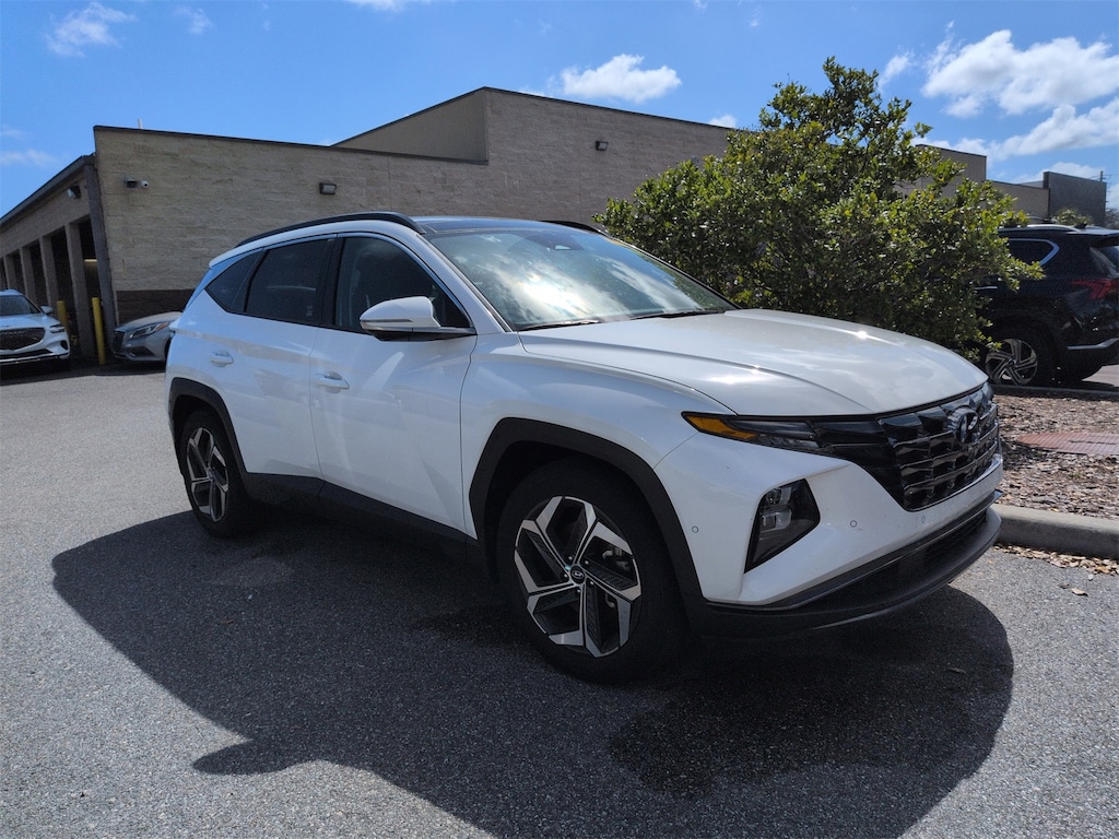 Clean CARFAX. This 2023 Hyundai Tucson Limited in Serenity White Pearl features Cargo Package (Cargo Net, Cargo Tray, and First Aid Kit), Option Group 01, 3.648 Axle Ratio, 4-Wheel Disc Brakes, 8 Speakers, ABS brakes, Air Conditioning, Alloy wheels, AM/FM radio: SiriusXM, Apple CarPlay & Android Auto, Auto High-beam Headlights, Auto-dimming Rear-View mirror, Automatic temperature control, Brake assist, Bumpers: body-color, Carpeted Floor Mats, Delay-off headlights, Driver door bin, Driver vanity mirror, Dual front impact airbags, Dual front side impact airbags, Electronic Stability Control, Emergency communication system: Blue Link Connected Car Service (3-year complimentary subscription), Four wheel independent suspension, Front and Rear Mudguards, Front anti-roll bar, Front Bucket Seats, Front Center Armrest, Front dual zone A/C, Front reading lights, Fully automatic headlights, Garage door transmitter: HomeLink, Heated & Ventilated Front Bucket Seats, Heated door mirrors, Heated front seats, Heated rear seats, Heated steering wheel, Illuminated entry, Leather Seat Trim, Low tire pressure warning, Memory seat, Navigation System, Occupant sensing airbag, Outside temperature display, Overhead airbag, Overhead console, Panic alarm, Passenger door bin, Passenger vanity mirror, Power door mirrors, Power driver seat, Power Liftgate, Power moonroof, Power passenger seat, Power steering, Power windows, Radio data system, Radio: Bose Premium w/AM/FM/HD/SiriusXM Audio System, Rain sensing wipers, Rear anti-roll bar, Rear Bumper Applique, Rear reading lights, Rear seat center armrest, Rear window defroster, Rear window wiper, Remote keyless entry, Roof rack: rails only, Security system, Speed control, Split folding rear seat, Spoiler, Steering wheel mounted audio controls, Tachometer, Telescoping steering wheel, Tilt steering wheel, Traction control, Trip computer, Turn signal indicator mirrors, Variably intermittent wipers, Ventilated front seats, Wheel Locks, and Wheels: 19" x 7.5J" Machine-Face Finish Alloy . Visit our showroom 24/7 at Jenkinshyundaiofjacksonville or call 904-420-3100. FWD