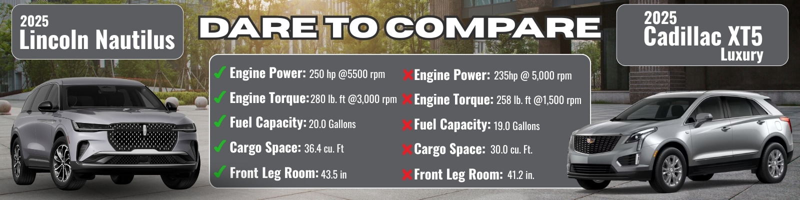 2025 Lincoln Nautilus Premiere vs. 2025 Cadillac XT5 Luxury