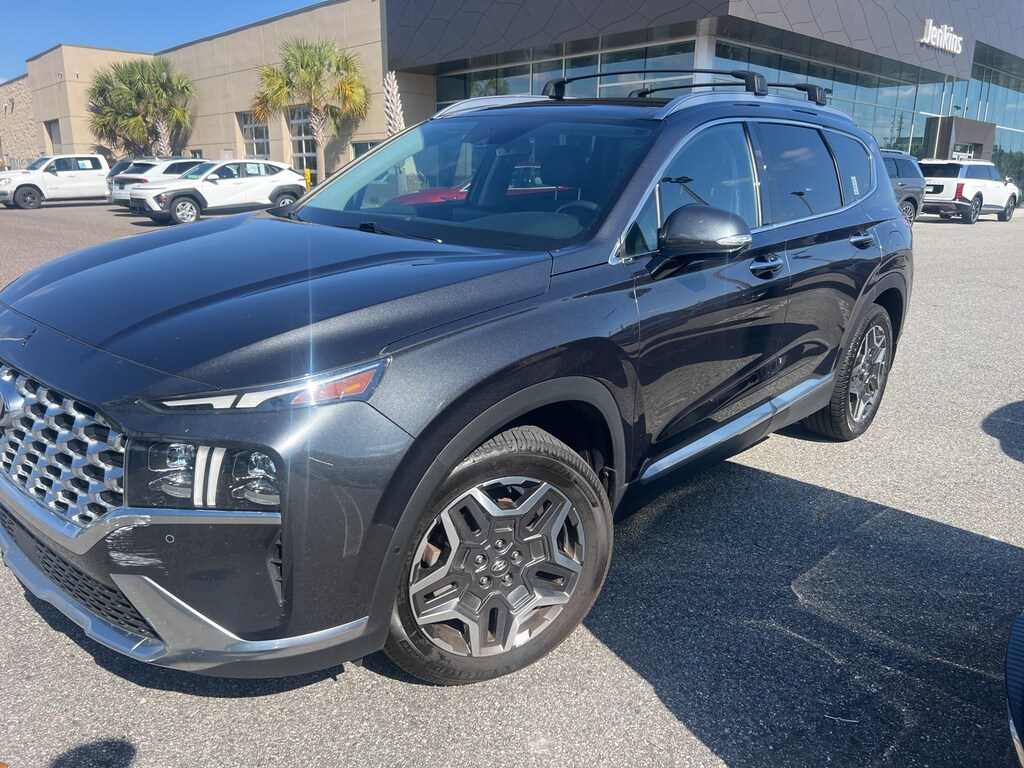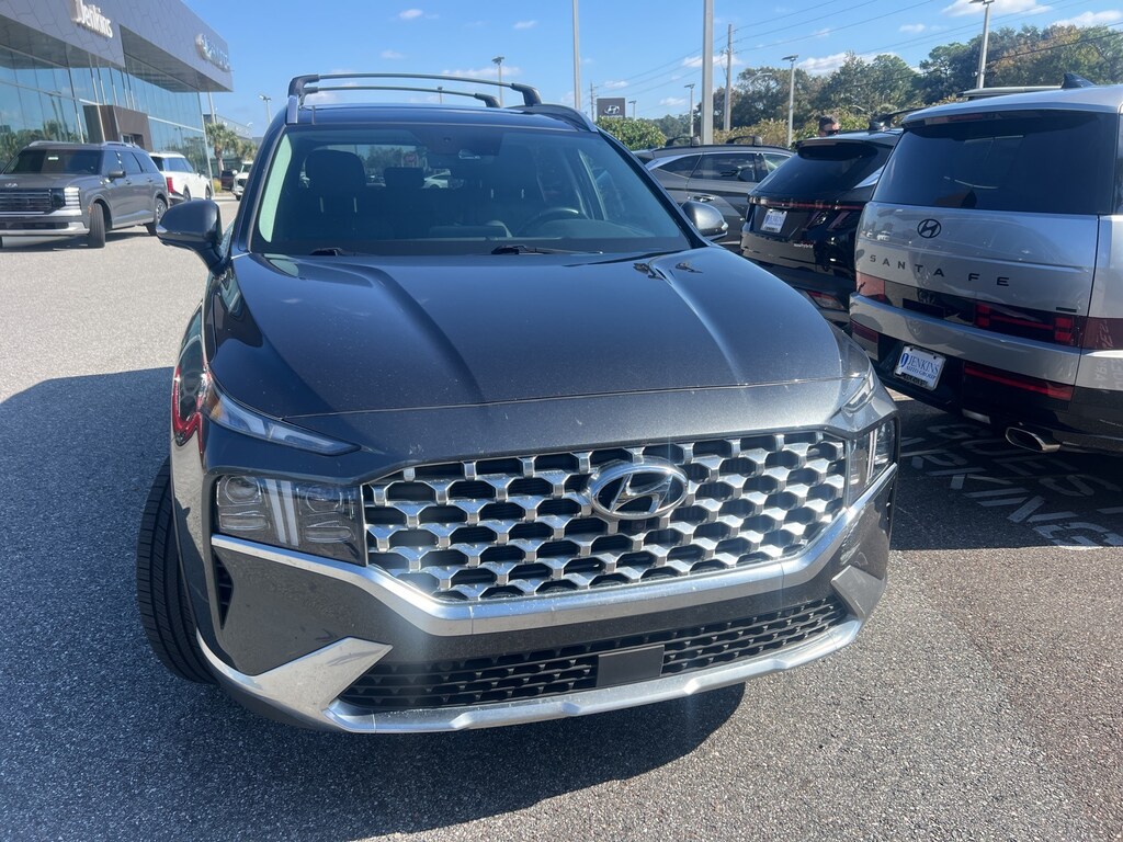 The price does not include tax, tag, license, an electronic filing fee of $449.00**, a private tag agency fee of $199.00**, and a predelivery service charge of $1199.00** **This charge represents costs and profit to the dealer for items such as inspecting, cleaning, and adjusting vehicles, as well as preparing documents related to the sale. * EPA-estimate metric: these are contingent on ideal conditions within a lab. Real-world situations such as carrying passengers or cargo, using climate control, driving style, and ambient temperatures can affect actual metrics. 22/28 City/Highway MPG Clean CARFAX. This 2021 Hyundai Santa Fe Limited in Portofino Gray features Option Group 01, 12 Speakers, 4-Wheel Disc Brakes, ABS brakes, Air Conditioning, Alloy wheels, AM/FM radio: SiriusXM, Apple CarPlay & Android Auto, Auto High-beam Headlights, Auto-dimming Rear-View mirror, Automatic temperature control, Axle Ratio: 3.316, Brake assist, Bumper Applique, Bumpers: body-color, Cargo Cover/Screen, Cargo Tray, Carpeted Floor Mats, Delay-off headlights, Driver door bin, Driver vanity mirror, Dual front impact airbags, Dual front side impact airbags, Electronic Stability Control, Emergency communication system, Four wheel independent suspension, Front anti-roll bar, Front Bucket Seats, Front Center Armrest, Front dual zone A/C, Front reading lights, Fully automatic headlights, Garage door transmitter: HomeLink, harman/kardon® Speakers, Heated & Ventilated Front Bucket Seats, Heated door mirrors, Heated front seats, Heated rear seats, Heated steering wheel, Illuminated entry, Leather Seat Trim, Leather steering wheel, Low tire pressure warning, Memory seat, Navigation System, Occupant sensing airbag, Outside temperature display, Overhead airbag, Overhead console, Panic alarm, Passenger door bin, Passenger vanity mirror, Power door mirrors, Power driver seat, Power Liftgate, Power moonroof, Power passenger seat, Power steering, Power windows, Radio: AM/FM/MP3 Harman Kardon Display Audio, Rain sensing wipers, Rear anti-roll bar, Rear seat center armrest, Rear window defroster, Rear window wiper, Remote keyless entry, Security system, Speed control, Speed-sensing steering, Split folding rear seat, Spoiler, Steering wheel mounted audio controls, Tachometer, Telescoping steering wheel, Tilt steering wheel, Traction control, Trip computer, Turn signal indicator mirrors, Variably intermittent wipers, Ventilated front seats, and Wheels: 19" x 7.5J Alloy . Visit our showroom 24/7 at Jenkinshyundaiofjacksonville or call 904-420-3100. FWD